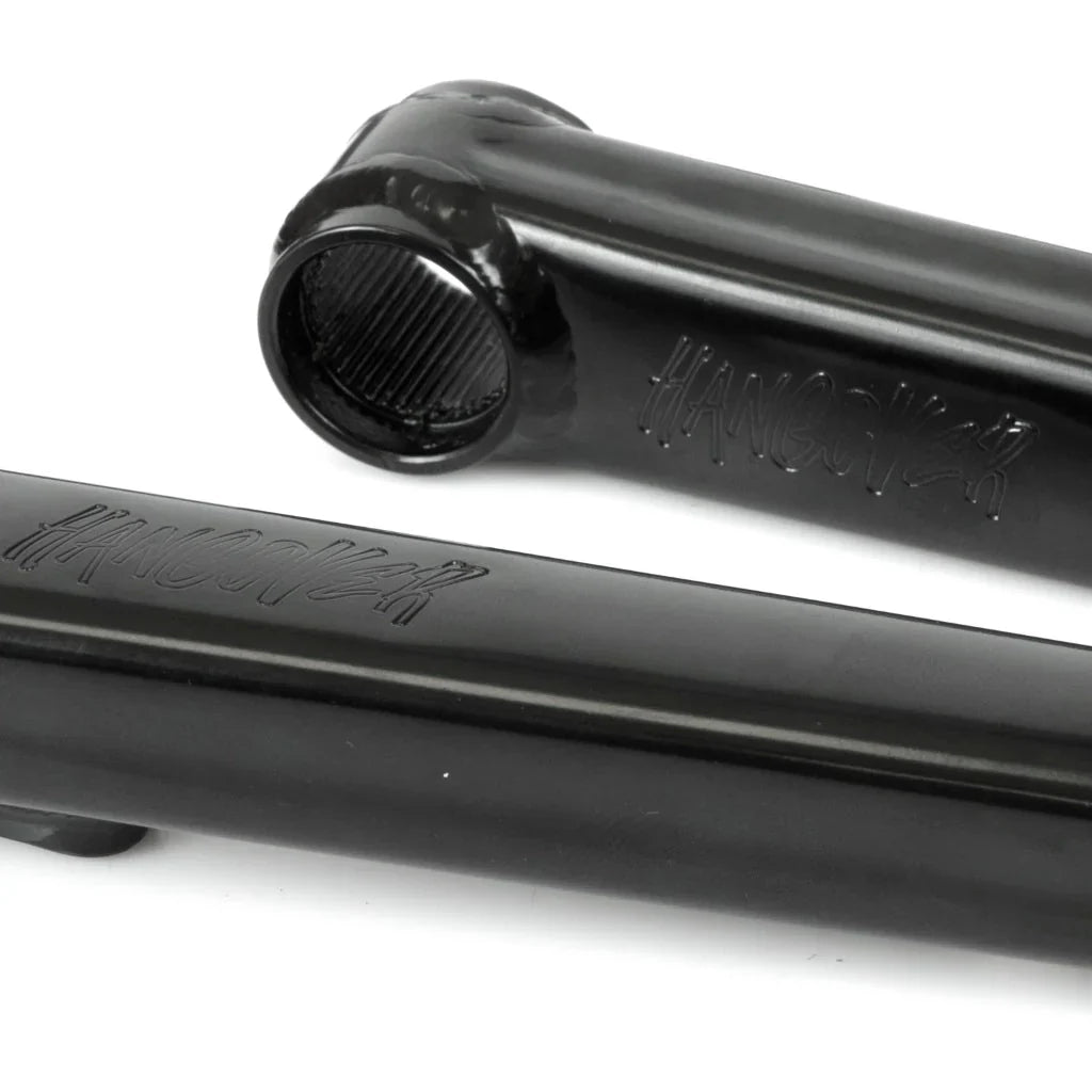 The Hangover H2 Cranks are engineered for strength, precision, and lightness. Featuring 4130 Chromoly steel arms, a 22mm hollow butted 48-spline Chromoly spindle, and lightweight 7075-T6 alloy bolts, these cranks are built to handle the demands of park, street, and dirt riding.